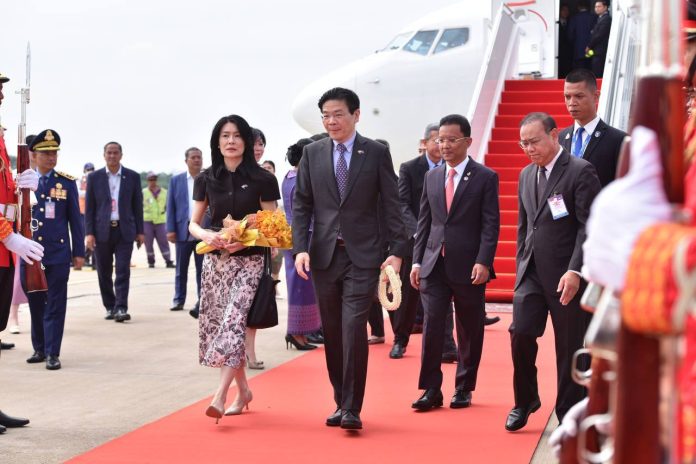 H.E. Lawrence Wong and his spouse were warmly welcomed upon their arrival at Phnom Penh International Airport by H.E. Hem Vanndy, Minister of Industry, Science, Technology and Innovation, as Minister-in-Attendance.