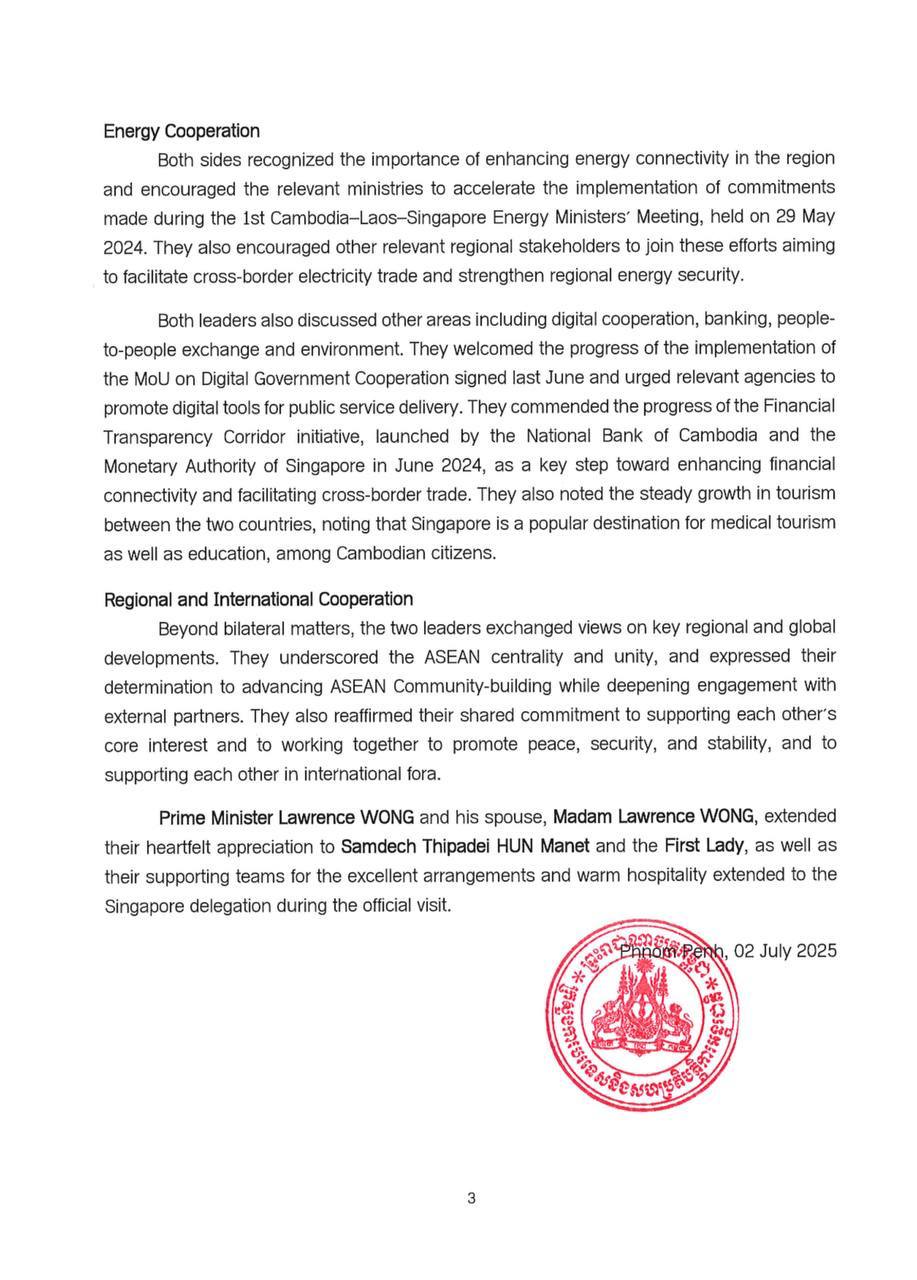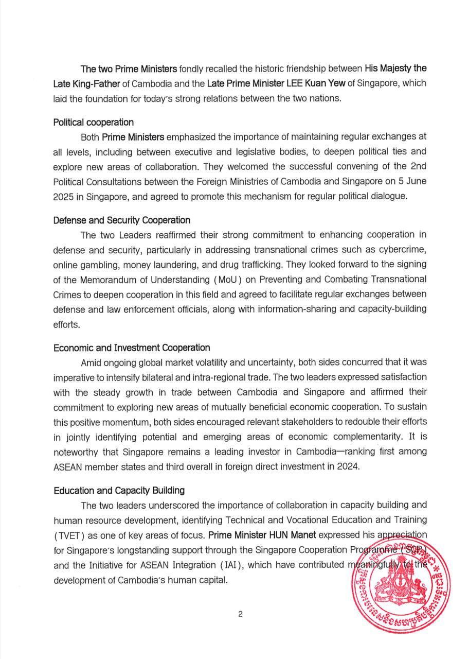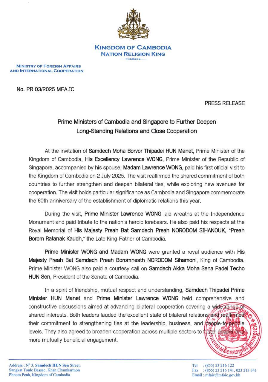 Prime Ministers of Cambodia and Singapore to Further Deepen Long-Standing Relations and Close Cooperation