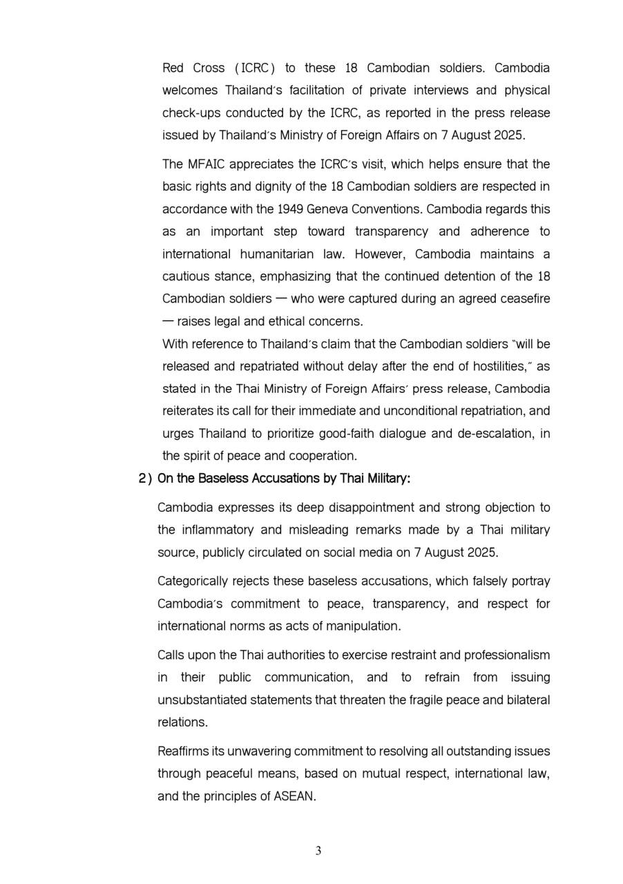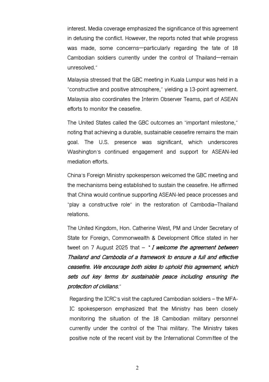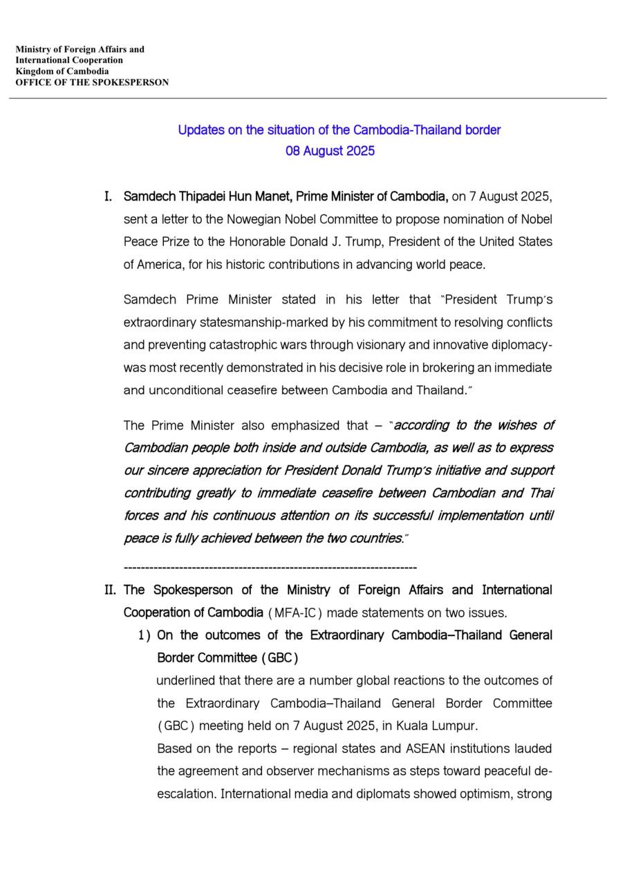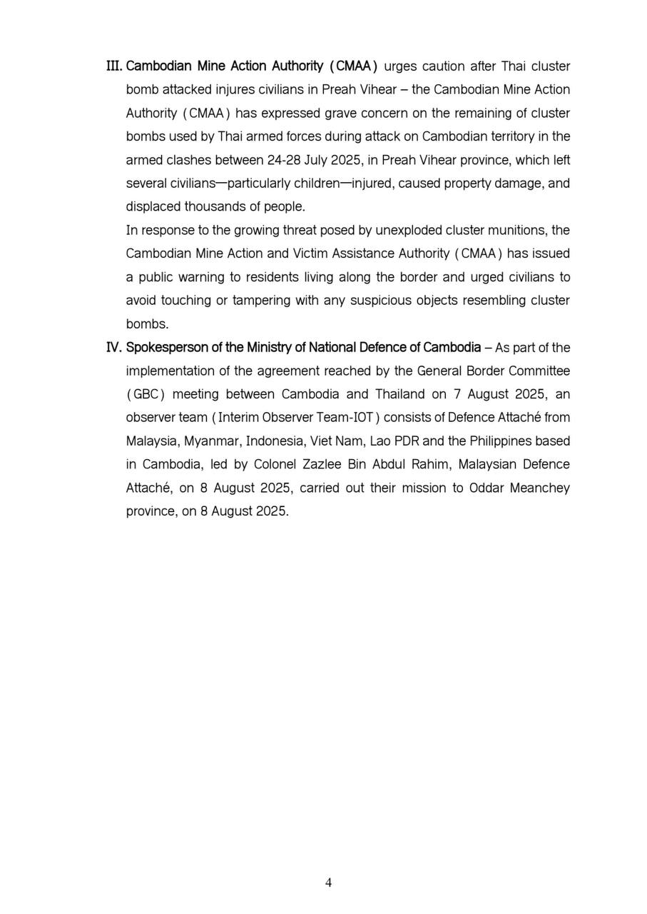 Updates on the situation along the Cambodia-Thailand Border 08 August 2025