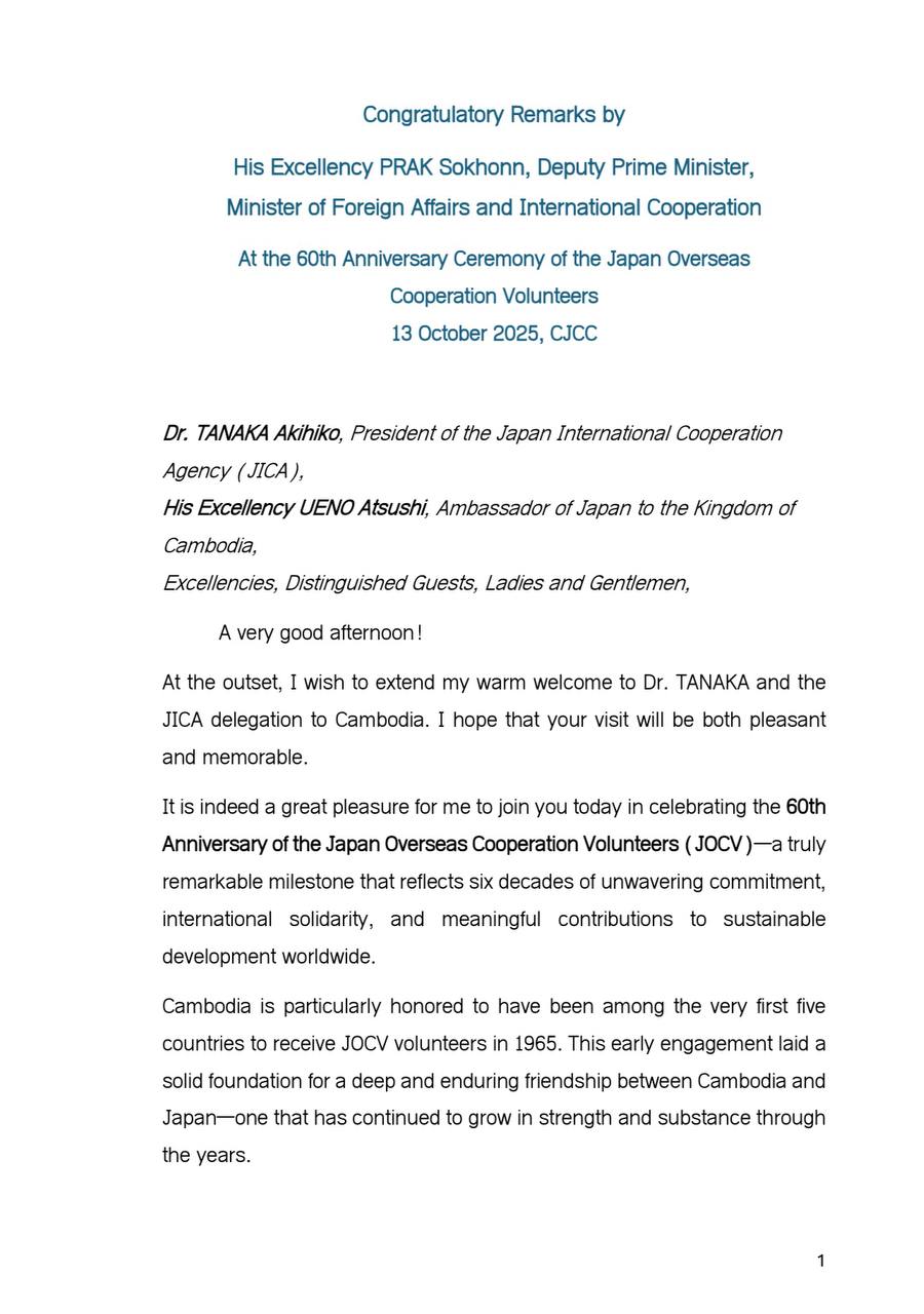 Minister of Foreign Affairs and International Cooperation, at the 60th Anniversary Ceremony of the Japan Overseas Cooperation Volunteers