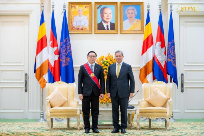 On the morning of 26 January 2026, Samdech Moha Borvor Thipadei HUN Manet, Prime Minister of the Kingdom of Cambodia, received a courtesy call from His Excellency Dr Linkham Douangsavanh, Minister of Agriculture and Forestry of the Lao People’s Democratic Republic, at the Peace Palace.