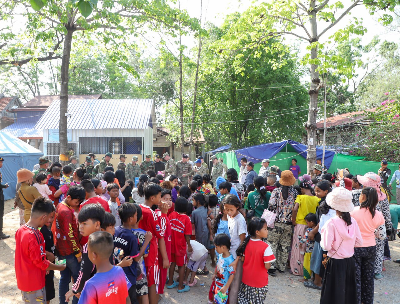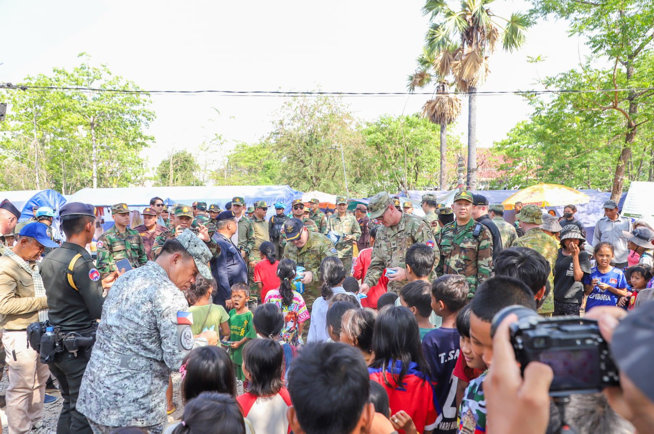 Following the visit to Prey Chan Village and the Boeng Trakuon Pass area on Wednesday, March 4, 2026, at 2:41 p.m., the Ministry of National Defence of the Kingdom of Cambodia continued coordinating a visit for Foreign Military Attachés from 12 countries. The delegation visited Cambodian displaced persons currently residing at a camp at Kandaol Pagoda, Thmar Pouk District, Banteay Meanchey Province. A total of 1,632 families (approximately 5,000 people) remain unable to return to their homes due to the illegal occupation of certain Cambodian territories, the installation of barbed wire and shipping containers by the Thai military. Many local homes have also been destroyed.