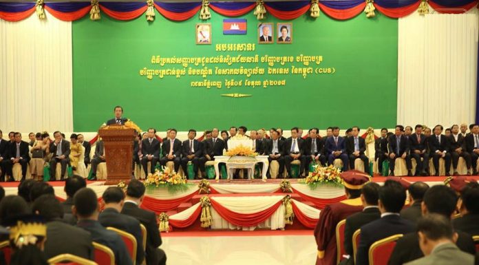 ពិធីប្រគល់សញ្ញាបត្រជូនដល់និស្សិតជ័យលាភី នៃសាកលវិទ្យល័យ ឯកទេស នៃកម្ពុជា (CUS) ក្រោមអធិបតីភាពដ៏ខ្ពង់ខ្ពស់បំផុត សម្តេចអគ្គមហាសេនាបតីតេជោ ហ៊ុន សែន នាយករដ្ឋមន្រ្តី នៃព្រះរាជាណាចក្រកម្ពុជា