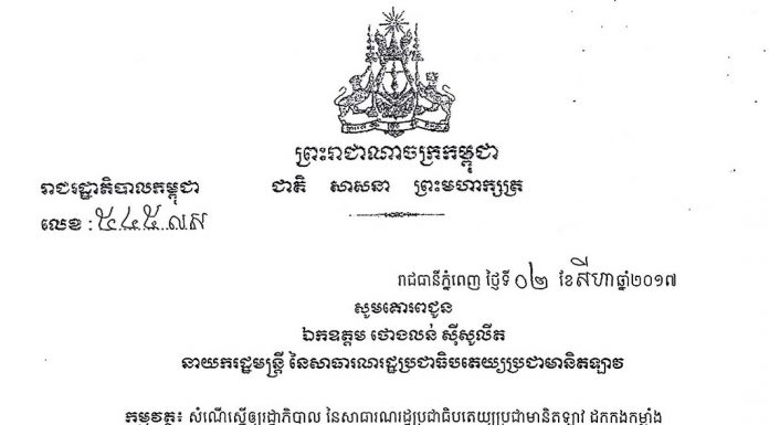 សារលិខិត សម្តេចតេជោ ហ៊ុន សែន ជូន នាយករដ្ឋមន្រ្តីឡាវ ស្តីពីការសុំដកកងកម្លាំងប្រដាប់អាវុធ ចេញពីតំបន់ក្បែអូរអាឡៃ និងតំបន់អូរតាង៉ាវ ព្រំដែនខេត្តស្ទឹងត្រែង និងខេត្តអាតាពើ ឡាវ