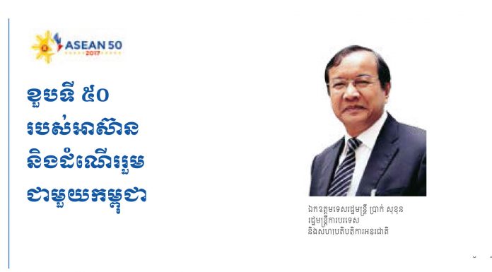 ក្នុងឆ្នាំនេះកម្ពុជាទទួលអំណរសាទររួមគ្នាជាមួយនឹងប្រទេសសមាជិកទាំង១០របស់សមាគមប្រជាជាតិអាស៊ីអគ្នេយ៍ (អាស៊ាន) ក្នុងឱកាសខួបទី ៥០ នៃអង្គការតំបន់នេះ