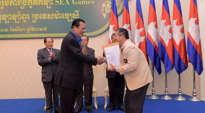 សម្តេចអគ្គមហាសេនាបតីតេជោ ហ៊ុន សែន នាយករដ្ឋមន្រ្តី អញ្ជើញជាអធិបតីក្នុងពិធីជួបសំណេះសំណាលជាមួយប្រតិភូ កីឡាករ កីឡាការិនី មុនចេញទៅប្រកួតកីឡា SEA Games នៅម៉ាឡេស៊ី ។