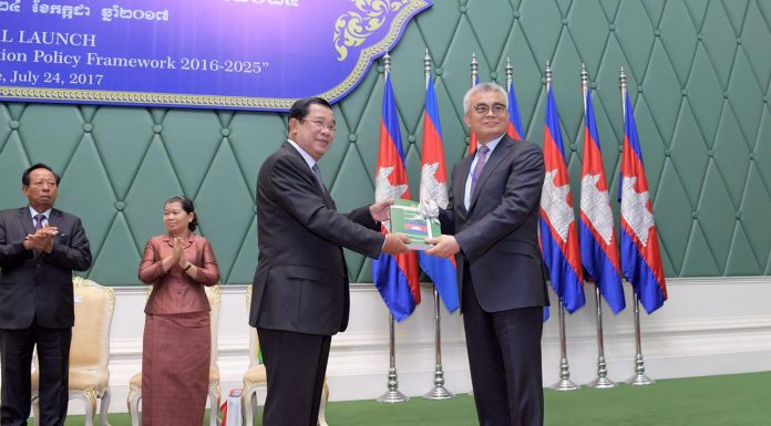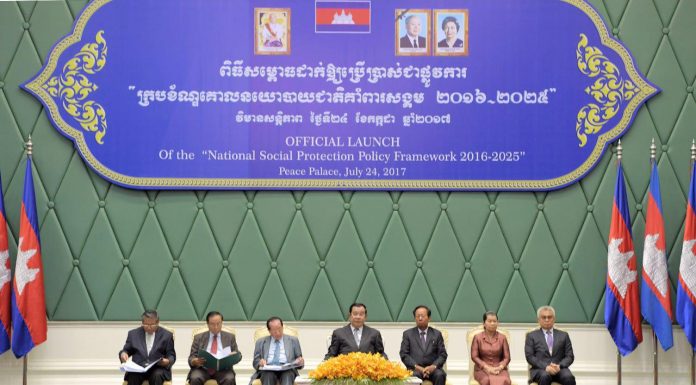 សម្តេចអគ្គមហាសេនាបតីតេជោ ហ៊ុន សែន នាយករដ្ឋមន្រ្តីនៃព្រះរាជាណាចក្រកម្ពុជា អញ្ជើញជាអធិបតី ពិធីសម្ពោធដាក់ឱ្យប្រើប្រាស់ជាផ្លូវការនូវក្របខណ្ឌគោលនយោបាយជាតិគាំពារសង្គម នាព្រឹកថ្ងៃទី២៤ ខែកក្កដា ឆ្នាំ២០១៧ នៅភ្នំពេញ