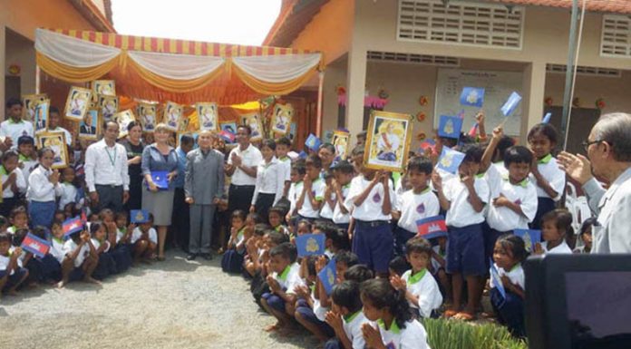 ព្រះមហាក្សត្រ ស្តេចយាងទតការដ្ឋានជីកស្រះទឹក និងយាងជួបសំណេះ សំណាលជាមួយសិស្សសាលាខេមឃីត ចំនួន ៩១០នាក់ ស្ថិតក្នុងស្រុកឧត្តុង្គ