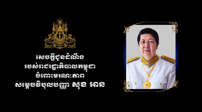 សេចក្តីជូនដំណឹង របស់រាជរដ្ឋាភិបាលកម្ពុជា ចំពោះមរណភាព សម្តេចវីបុលបញ្ញា សុខ អាន ឧបនាយករដ្ឋមន្រ្តី រដ្ឋមន្រ្តី ទទួលបន្ទុកទីស្តីការគណៈរដ្ឋមន្រ្តី