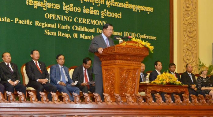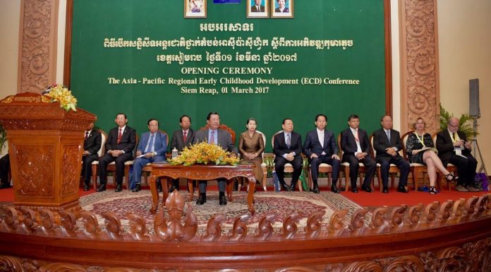 ប្រមុខរាជរដ្ឋាភិបាលកម្ពុជា សម្តេចតេជោ ហ៊ុន សែន នៅព្រឹកថ្ងៃទី០១ ខែមីនា ឆ្នាំ២០១៧នេះ បានអញ្ជើញជាអធិបតីបើកសន្និសីទ អន្តរជាតិ ថ្នាក់តំបន់អាស៊ីប៉ាស៊ីហ្វិកស្តីពីការអភិវឌ្ឍន៍កុមារតូច ដែលរៀបចំឡើងដោយក្រសួងអប់រំ យុវជន និងកីឡា។