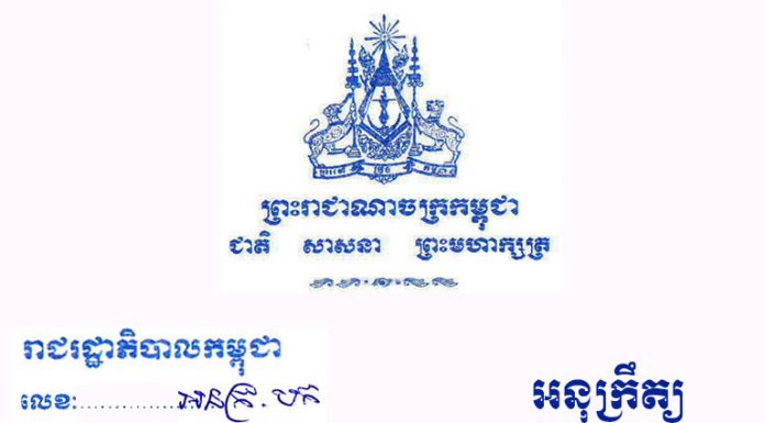អនុក្រឹត្យ ស្តីពីការដំឡើងប្រា...
