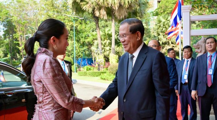 សម្ដេចអគ្គមហាសេនាបតីតេជោ ហ៊ុន សែន ប្រធានព្រឹទ្ធសភា នៃព្រះរាជាណាចក្រកម្ពុជា បានទទួលស្វាគមន៍លោកជំទាវ Paetongtarn Shinawatra