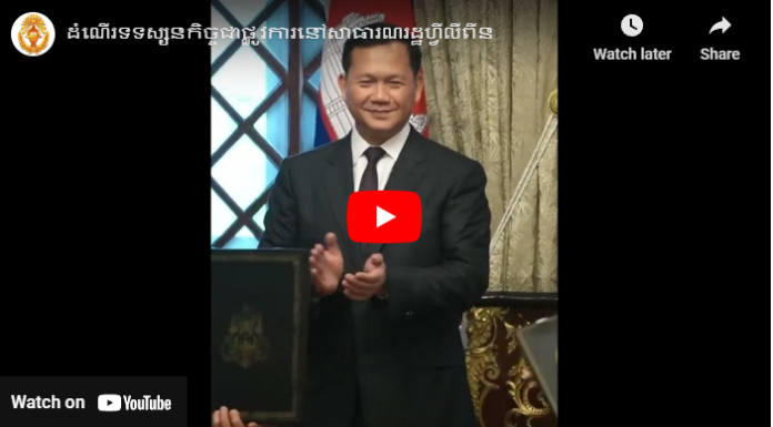 សម្តេចធិបតី នាយករដ្ឋមន្ត្រី អញ្ជើញចូលរួមជាអធិបតីភាពជាមួយឯកឧត្តម Ferdinand R. Marcos Jr. ប្រធានាធិបតី នៃសាធារណរដ្ឋហ្វីលីពីន ក្នុងពិធីផ្លាស់ប្តូរឯកសារលើកិច្ចសហប្រតិបត្តិការចំនួន ០៨រួមមាន