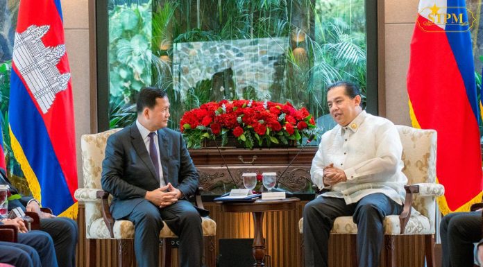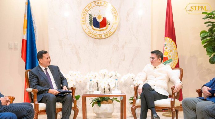 សម្តេចមហាបវរធិបតី ហ៊ុន ម៉ាណែត នាយករដ្ឋមន្រ្តី នៃព្រះរាជាណាចក្រកម្ពុជា បានអញ្ជើញជួបពិភាក្សាការងារជាមួយ ឯកឧត្តម Francis G. Escudero ប្រធានព្រឹទ្ធសភា