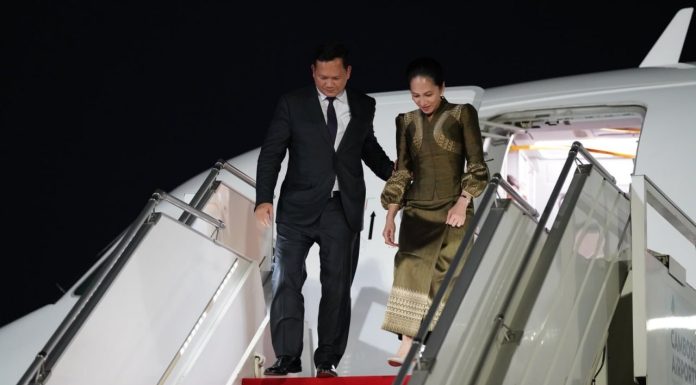 សម្តេចមហាបវរធិបតី ហ៊ុន ម៉ាណែត នាយករដ្ឋមន្ត្រីនៃកម្ពុជា និងលោកជំទាវបណ្ឌិត ពេជ ចន្ទមុន្នី ហ៊ុនម៉ាណែត បានអញ្ជើញត្រឡប់មកដល់មាតុភូមិវិញ
