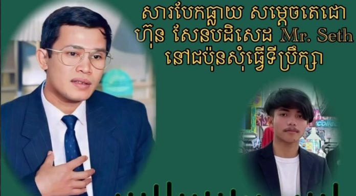 សម្តេចតេជោ ហ៊ុន សែន ប្រធានព្រឹទ្ធសភាកម្ពុជា និងជាប្រធានគណបក្សប្រជាជនកម្ពុជា នៅថ្ងៃទី៣១ ខែមករា ឆ្នាំ២០២៥នេះ បានទម្លាយសារសំឡេងទាំងស្រុងដែលពន្យល់ យុវជនរហ័សនាម Mr. Seth រឿងស្នើសុំតំណែង។