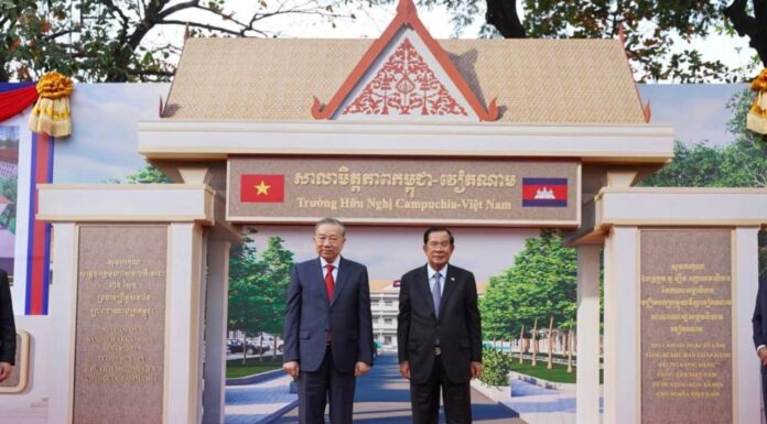 សម្ដេចអគ្គមហាសេនាបតីតេជោ ហ៊ុន សែន ប្រធានព្រឹទ្ធសភា នៃព្រះរាជាណាចក្រកម្ពុជា និងឯកឧត្តម តូ ឡឹម អគ្គលេខាធិការនៃគណៈកម្មាធិការមជ្ឈិមបក្សកុម្មុយនីស្តវៀតណាម បានអញ្ជើញជាអធិបតីតីដ៏ខ្ពង់ខ្ពស់ក្នុងពិធី