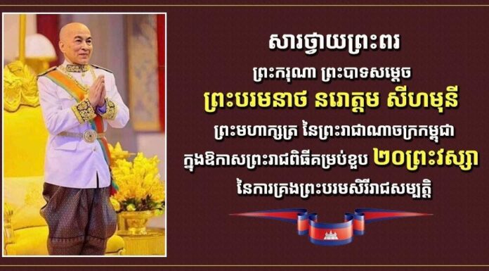 វីដេអូឯកសារ៖ ថ្វាយព្រះពរ និងអបអរសាទរ ព្រះករុណាជាអម្ចាស់ជីវិតលើត្បូង ជាទីគោរពសក្ការៈដ៏ខ្ពង់ខ្ពស់បំផុត ក្នុងព្រះរាជវរោកាសខួបទី២០ ព្រះរាជពិធីបុណ្យគ្រងព្រះបរមសិរីរាជសម្បត្តិ សូមព្រះអង្គប្រកបដោយព្រះបរមសុខគ្រប់ប្រការ និងព្រះជន្មាយុយឺនយូរ ថ្ងៃទី២៨ ២៩ ៣០ ខែតុលា ២០២៤