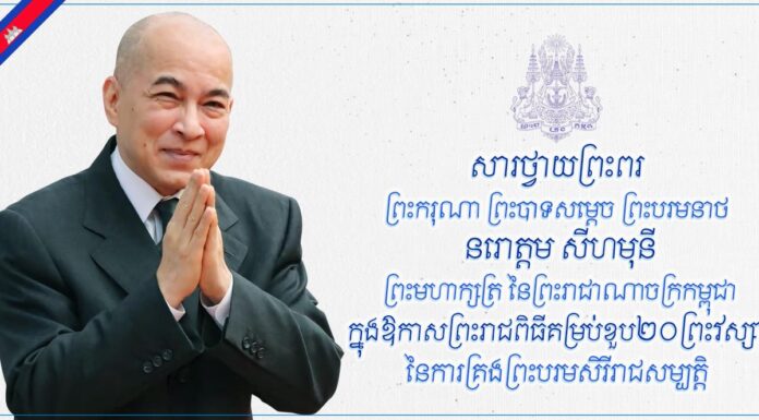 ព្រះករុណា ព្រះបាទសម្តេច ព្រះបរមនាថ នរោត្តម សីហមុនី ព្រះមហាក្សត្រនៃកម្ពុជា នៅព្រឹកថ្ងៃទី២៨ ខែតុលា ឆ្នាំ២០២៤នេះ ទ្រង់សព្វព្រះរាជហឫទ័យ រៀបចំព្រះរាជពិធីសាសនា ក្នុងឱកាសគម្រប់ខួប២០ព្រះវស្សា នៃការគ្រងព្រះបរមសិរីរាជសម្បត្តិ។