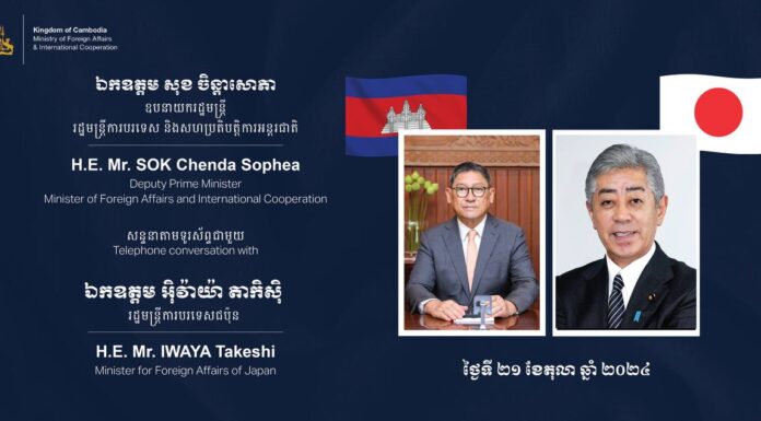នៅថ្ងៃទី២១ ខែតុលា ឆ្នាំ២០២៤ ឯកឧត្តម សុខ ចិន្តាសោភា ឧបនាយករដ្ឋមន្ត្រី និង ជារដ្ឋមន្ត្រីការបរទេស និងសហប្រតិបត្តិការអន្តរជាតិ បានជួបសន្ទនាតាមទូរស័ព្ទប្រកបដោយផ្លែផ្កាជាមួយ