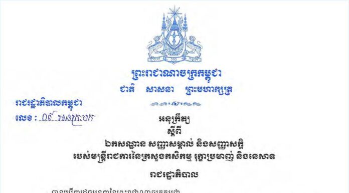 អនុក្រឹត្យ ស្តីពី ឯកសណ្ឋាន សញ្ញាសម្គាល់ និងសញ្ញាសក្តិ របស់មន្ត្រីរាជការនៃក្រសួងកសិកម្ម រុក្ខាប្រមាញ់ និងនេសាទ