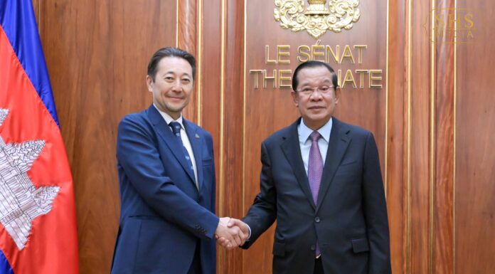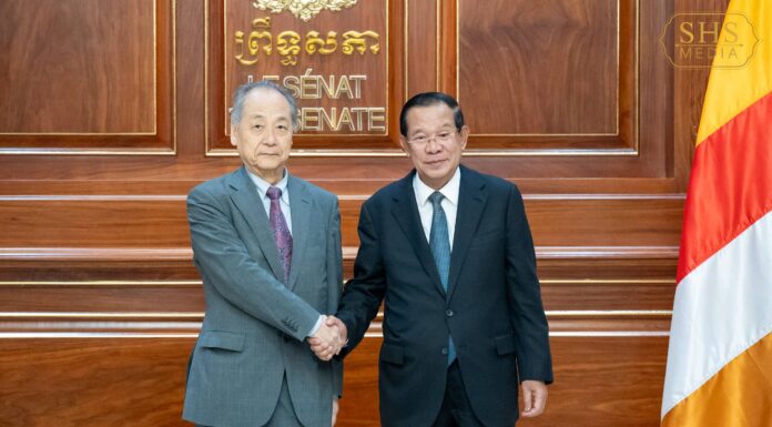 នៅវិមានសាមគ្គីភាព នៃព្រឹទ្ធសភា នាព្រឹកថ្ងៃទី១ ខែមេសា ឆ្នាំ២០២៦នេះ សម្តេចអគ្គមហាសេនាបតីតេជោ ហ៊ុន សែន ប្រមុខរដ្ឋស្តីទីនៃព្រះរាជាណាចក្រកម្ពុជា បានអនុញ្ញាតឱ្យឯកឧត្តម តាកាយ៉ាស៊ី ហ្វូមីអាគី