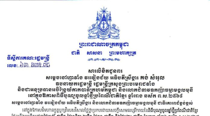 សារលិខិតជូនពររបស់ ឯកឧត្តម វង្ស...