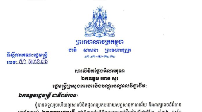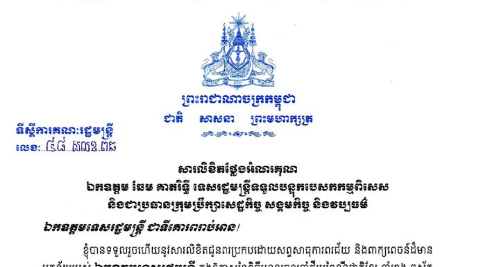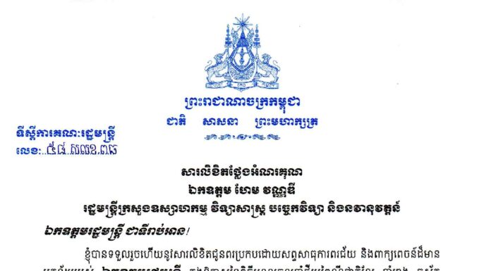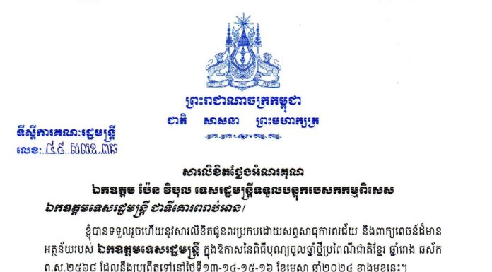 សារលិខិតជូនពរ របស់ឧបនាយករដ្ឋមន...