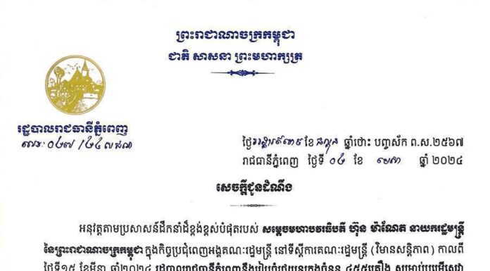 សម្តេចតេជោ ហ៊ុន សែន អនុញ្ញាតឱ្...