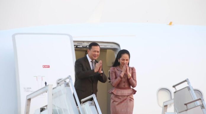 សម្តេចមហាបវរធិបតី ហ៊ុន ម៉ាណែត នាយករដ្ឋមន្ត្រី នៃព្រះរាជាណាចក្រកម្ពុជា និងលោកជំទាវបណ្ឌិត ពេជ ចន្ទមុន្នី អញ្ជើញមកដល់កន្លែងស្នាក់នៅ ក្រោមកិច្ចស្វាគមន៍យ៉ាងកក់ក្តៅពីសំណាក់