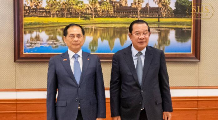 សម្តេចអគ្គមហាសេនាបតីតេជោ ហ៊ុន សែន ប្រធានព្រឹទ្ធសភានៃព្រះរាជាណាចក្រកម្ពុជា អនុញ្ញាតឱ្យ ឯកឧត្តម Bui Thanh Son ឧបនាយករដ្ឋមន្ត្រី នៃសាធារណរដ្ឋសង្គមនិយមវៀតណាម ចូលជួបសម្តែងការគួរសម និងពិភាក្សាការងារ