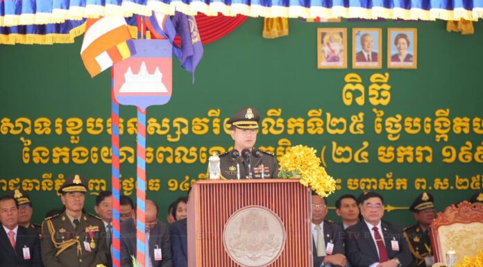 ថ្ងៃនេះ ខ្ញុំមានសេចក្តីសោមនស្សរីករាយ ដោយបានចូលរួមជាអធិបតីក្នុងពិធីអបអរសាទរខួបអនុស្សាវរីយ៍ ២៥ ឆ្នាំ ថ្ងៃបង្កើតបញ្ជាការដ្ឋានកងទ័ពជើងគោកនៃកងយោធពលខេមរភូមិន្ទដ៏មានអត្ថន័យនាពេលនេះ