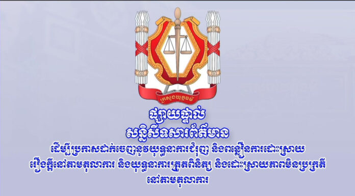ឯកឧត្តម កើត រិទ្ធ ឧបនាយករដ្ឋមន្រ្តី រដ្ឋមន្រ្តីក្រសួងយុត្តិធម៌ និងជាប្រធានគណៈបញ្ជាការដឹកនាំយុទ្ធនាការជំរុញនិងពន្លឿន ការដោះស្រាយរឿងក្តីនៅតាមតុលាការ