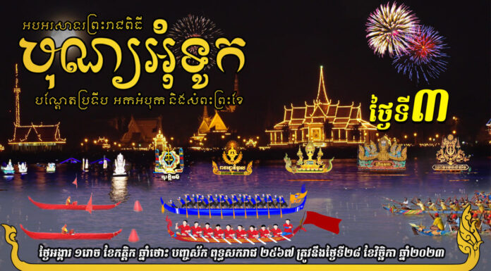 ថ្ងៃនេះជាថ្ងៃទី៣ ដែលជាថ្ងៃចុងក្រោយ នៃព្រះរាជពិធីបុណ្យអុំទូក បណ្តែតប្រទីប សំពះព្រះខែ និងអកអំបុក ឆ្នាំ២០២៣។
