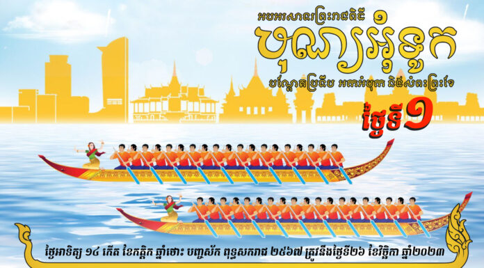 ព្រះរាជពិធីបុណ្យអុំទូក បណ្តែតប្រទីប និងសំពះព្រះខែ អកអំបុក នៅមុខព្រះបរមរាជវាំង រាជធានីភ្នំពេញ ថ្ងៃទី១។ ថ្ងៃអាទិត្យ ១៤ កើត ខែកត្តិក ឆ្នាំថោះ បញ្ចស័ក ពុទ្ធសករាជ ២៥៦៧ ត្រូវនឹងថ្ងៃទី២៦ ខែវិច្ឆិកា ឆ្នាំ២០២៣