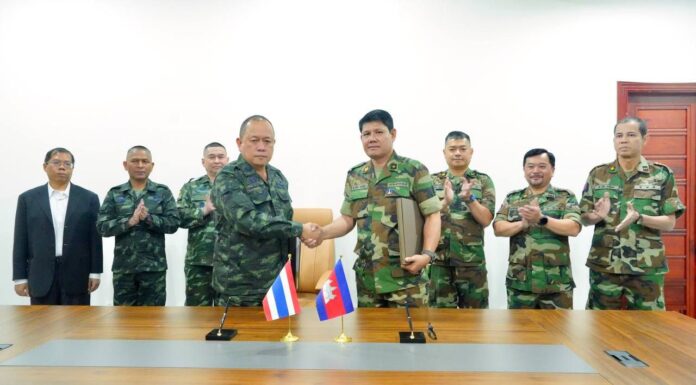 នៅច្រកព្រំដែនអូរស្មាច់ ខេត្តឧត្តរមានជ័យ យោធភូមិភាគទី៤ កម្ពុជា និងកងទ័ពភូមិភាគទី២ ថៃ បានរៀបចំកិច្ចប្រជុំពិសេសក្រុមលេខាធិការដ្ឋាន