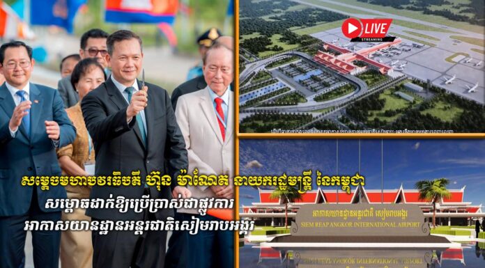 សម្តេចមហាបវរធិបតី ហ៊ុន ម៉ាណែត នាយករដ្ឋមន្ត្រី នៃព្រះរាជាណាចក្រកម្ពុជា បានអញ្ជើញជាអធិបតី ក្នុងពិធីសម្ពោធដាក់ឱ្យប្រើប្រាស់ជាផ្លូវការ "អាកាសយានដ្ឋានអន្តរជាតិសៀមរាបអង្គរ