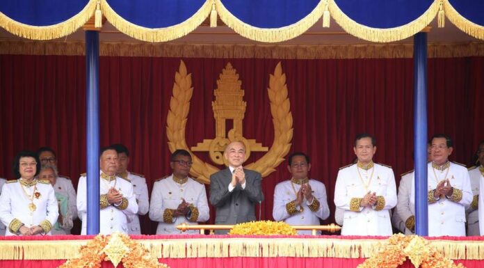 ព្រះករុណា ព្រះបាទសម្ដេចព្រះបរមនាថ នរោត្ដម សីហមុនី ព្រះមហាក្សត្រ នៃព្រះរាជាណាចក្រកម្ពុជា ស្តេចយាងជាព្រះរាជាធិបតី ពិធីបុណ្យខួបអនុស្សាវរីយ៍ លើកទី៧០ នៃទិវាបុណ្យឯករាជ្យជាតិ ៩ វិច្ឆិកា