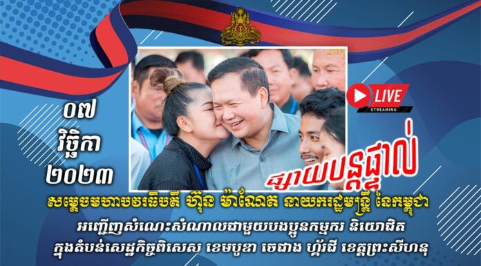 នៅព្រឹកថ្ងៃចន្ទ ៨រោច ខែអស្សុជ ឆ្នាំថោះ បញ្ចស័ក ព.ស២៥៦៧ ត្រូវនឹងថ្ងៃទី៦ ខែវិច្ឆិកា ឆ្នាំ២០២៣ នេះ សម្តេចមហាបវរធិបតី ហ៊ុន ម៉ាណែត នាយករដ្ឋមន្ត្រី