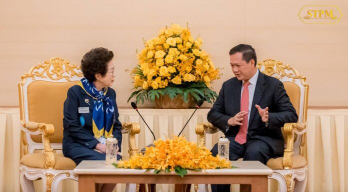 សម្តេចមហាបវរធិបតី ហ៊ុន ម៉ាណែត នាយករដ្ឋមន្រ្តី នៃព្រះរាជាណាចក្រកម្ពុជា និងលោកស្រីបណ្ឌិត ចូសិន បាយអុន (Dr. Juseon Byun) ស្ថាបនិកមិត្តកាយឫទ្ធិនារីប្រចាំតំបន់អាស៊ីប៉ាស៊ីហ្វិក