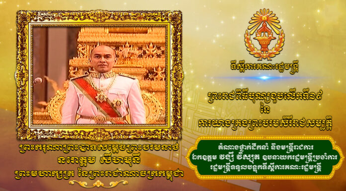 សម្តេចមហាបវរធិបតី ហ៊ុន ម៉ាណែត នាយករដ្ឋមន្ត្រីនៃកម្ពុជា បានថ្វាយសារលិខិតថ្វាយព្រះពរបវរមហាប្រសើរ ថ្វាយព្រះមហាក្សត្រ ក្នុងឱកាសព្រះរាជពិធីបុណ្យ ខួបលើកទី១៩