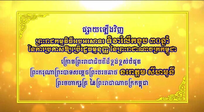 វីដេអូឯកសារ៖ស្តីពីទិវាខួបប្រកាសឲ្យប្រើរដ្ឋធម្មនុញ្ញនៃព្រះរាជាណាចក្រកម្ពុជា ខួប៣០ឆ្នាំ ក្រោមព្រះរាជធិបតីនៃព្រះករុណា នៅមហោស្រពកោះពេជ្រ