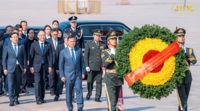 សម្តេចធិបតីនាយករដ្ឋមន្រ្តី និងលោកជំទាវបណ្ឌិត អញ្ជើញដាក់កម្រងផ្កាគោរពវិញ្ញាណក្ខន្ធវិរបុរសចិន នៅស្តុបអនុស្សាវរីយ៍វិរបុរសចិន មហាទីលានធានអាន