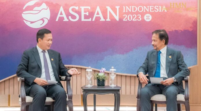 សម្តេចមហាបវរធិបតី ហ៊ុន ម៉ាណែត នាយករដ្ឋមន្រ្តី នៃព្រះរាជាណាចក្រកម្ពុជា បានជួបសម្តែងការគួរសមជាមួយ ព្រះចៅស៊ុលតង់ ហាជី ហាសសាណាល់ បុលគីយ៉ាស់ មុយអ៉ីហ្សាឌីន វ៉ាឌូឡាហ៍