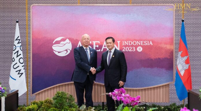 នៅរដ្ឋធានីហ្សាការតា នៃសាធារណរដ្ឋឥណ្ឌូណេស៊ី សម្តេចមហាបវរធិបតី ហ៊ុន ម៉ាណែត នាយករដ្ឋមន្រ្តី នៃព្រះរាជាណាចក្រ កម្ពុជា បានជួប សម្តែងការគួរសមជាមួយ លោកសាស្រ្តាចារ្យ ក្លូស ស្វប់ (Klaus Schwab)