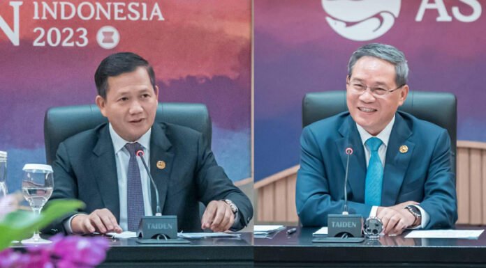 សម្តេចមហាបវរធិបតី ហ៊ុន ម៉ាណែត នាយករដ្ឋមន្ត្រី នៃព្រះរាជាណាចក្រកម្ពុជា បានជួបសម្ដែងការគួរសមជាមួយ ឯកឧត្តម លី ឈាង (Li Qiang) នាយករដ្ឋមន្ត្រីនៃសាធារណរដ្ឋប្រជាមានិតចិន