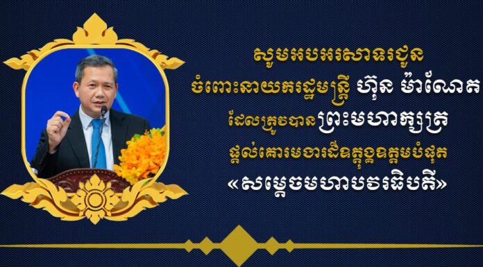 សម្តេចមហាបវរធិបតី ហ៊ុន ម៉ាណែត នាយករដ្ឋមន្រ្តីនៃកម្ពុជា នៅថ្ងៃទី២ ខែកញ្ញា ឆ្នាំ២០២៣នេះ បានថែ្លងអំណរព្រះរាជគុណចំពោះព្រះមហាក្សត្រ ដែលបានព្រះរាជហឫទ័យប្រោសព្រះរាជទានគោរមងារជូន សម្តេច។