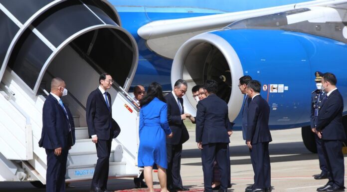 បន្ទាប់ពីបានមកដល់ប្រទេសកម្ពុជា លោក វ៉ាង យី (WANG Yi) សមាជិកការិយាល័យនយោបាយ និងជាប្រធានការិយាល័យគណៈកម្មការកិច្ចការបរទេស នៃគណៈកម្មាធិការមជ្ឈិមបក្សកុម្មុយនីស្តចិន