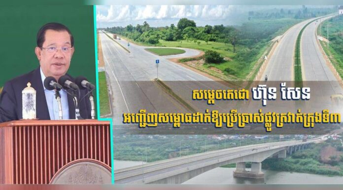ថ្ងៃនេះ យើងសម្ពោធដាក់ឲ្យប្រើប្រាស់នូវផ្លូវក្រវាត់ក្រុងទី៣ ប្រវែងជាង៥២គីឡូម៉ែត្រ ដែលហិរញ្ញប្បទានដោយសាធារណរដ្ឋប្រជាមានិតចិន និងការចូលរួមបដិភាគដ៏ច្រើនពីសំណាក់រាជរដ្ឋាភិបាលកម្ពុជា