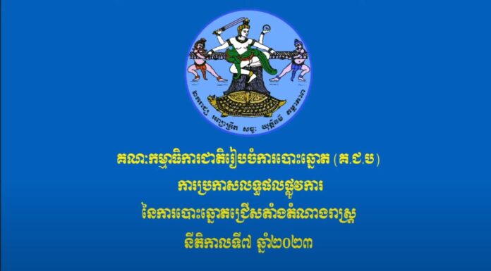 គណៈកម្មាធិការជាតិរៀបចំការបោះឆ្នោត (គ.ជ.ប) នៅថ្ងៃទី៥ ខែសីហា ឆ្នាំ២០២៣នេះ បានបង្ហាញលទ្ធផលផ្លូវការ នៃការបោះឆ្នោតជាតិជ្រើសតាំងតំណាងរាស្ត្រ អាណត្តិទី៧ ដោយគិតជាសំឡេងឆ្នោត